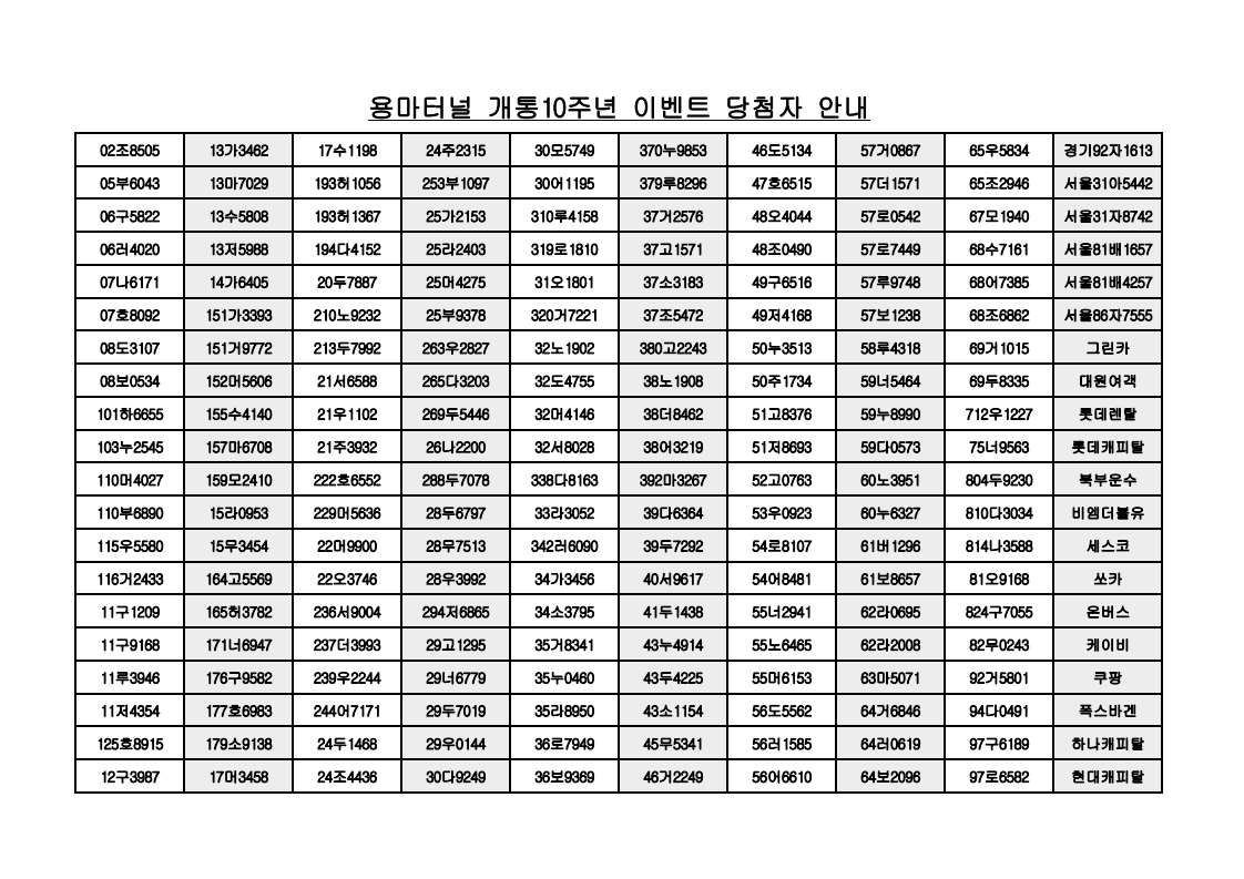 공지 | 개통10주년 이벤트 당첨자 안내