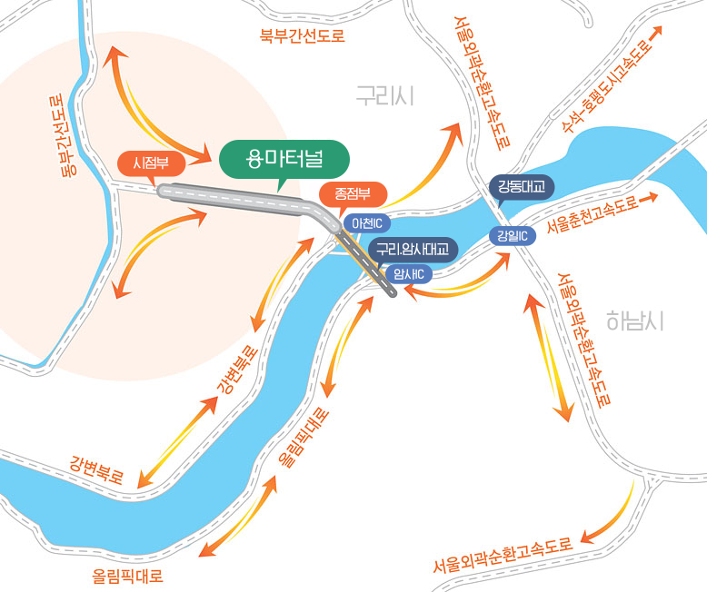 강동구 암사동 - 구리·암사대교 - 용마터널